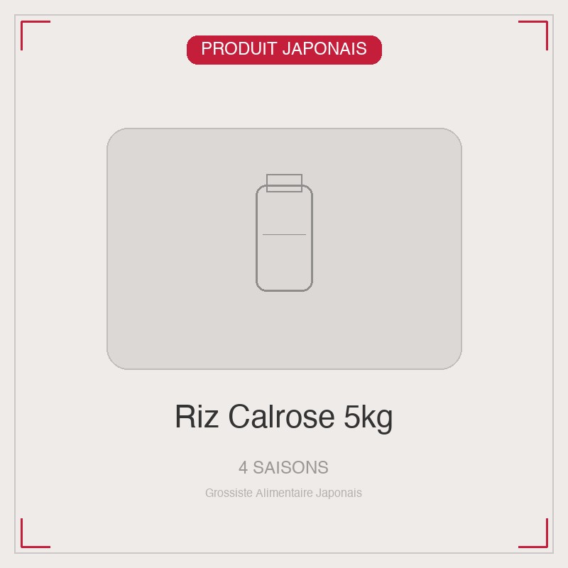 Riz Calrose premium qualite sushi en sac de 5kg. Grain moyen, texture collante parfaite pour sushi et onigiri. Recolte recente. Format economique.